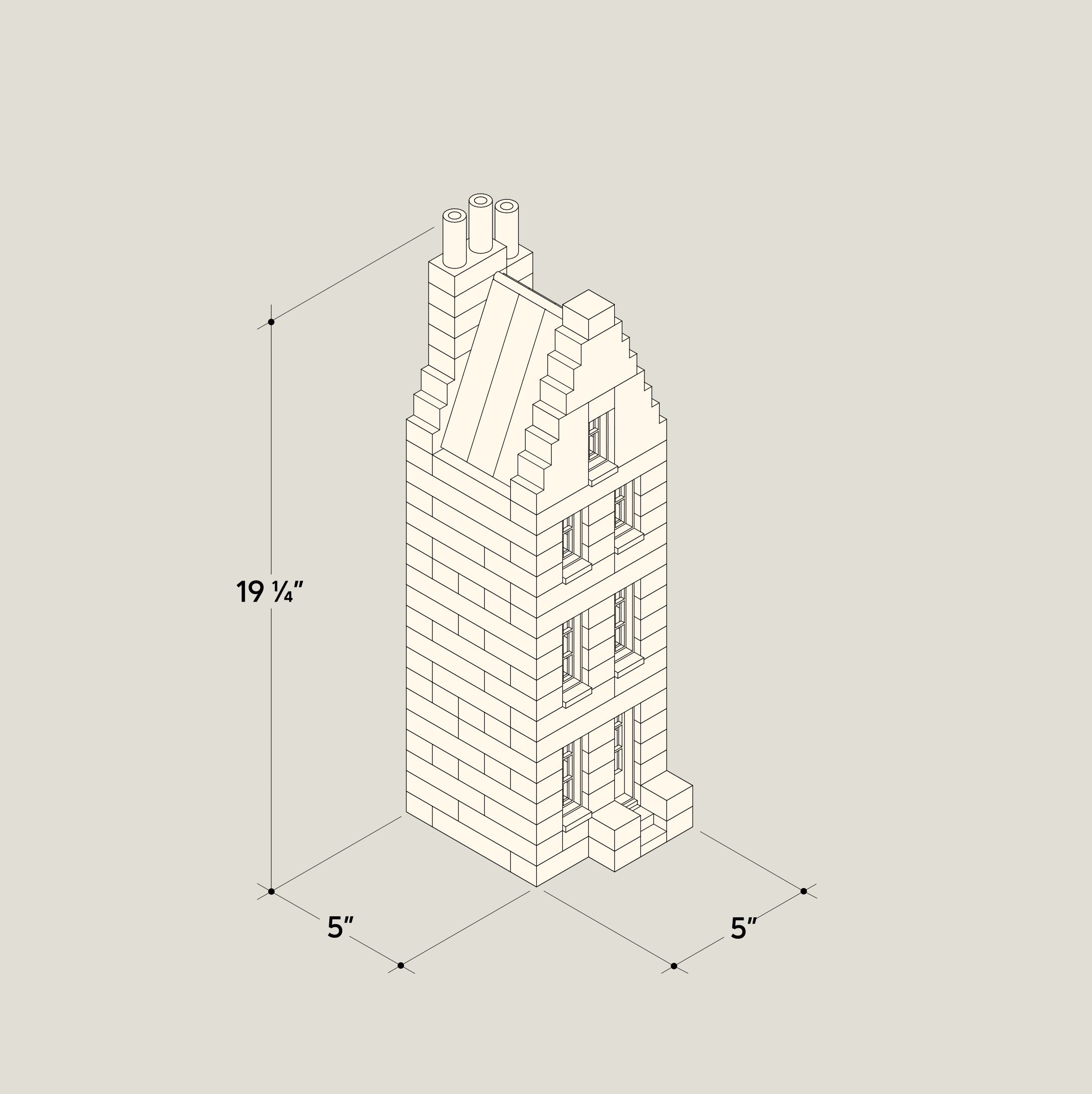 Amsterdam House No. 3 includes a total of 139 wood blocks and metal accessories.