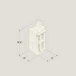 There are many different blocks and components with varying dimensions that make up our Loam Blocks kits. However, for general reference, each block is designed within an 'inch' width and length module with an 11/16" standard height, throughout.